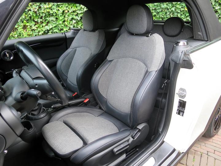 Zeer nette, goed onderhouden Mini Cabrio Cooper F57 in de kleur Pepper White met een zwarte stoffen kap, zwarte 17" Cosmos Spoke lichtmetalen velgen en een half leder Carbon Black sportinterieur met een Carbon Black colourline en Piano Black interieurdelen! Deze Cooper Cabrio heeft slechts 1 eigenaar gehad die er slechts 59.399km mee heeft gereden. De Cabrio is o.a. uitgerust met een origineel windscherm, Park Distance Control (PDC) achter, LED kop- en mistlampen, climate control, lederen multifunctioneel sportstuur met cruise control, stoelverwarming, lichtpakket en opbergpakket.