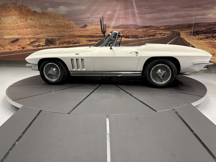 The 1965 model year marked a turning point in Corvette history. With its sharp, aggressive lines and distinctive hidden headlights, the C2 Corvette—often referred to as the “Mid-Year Corvette”—set a new benchmark for American sports cars. This particular example stands out in a dazzling Ermine White exterior finish, beautifully contrasted by a sleek black leather interior that still exudes sophistication and charm nearly 60 years later.