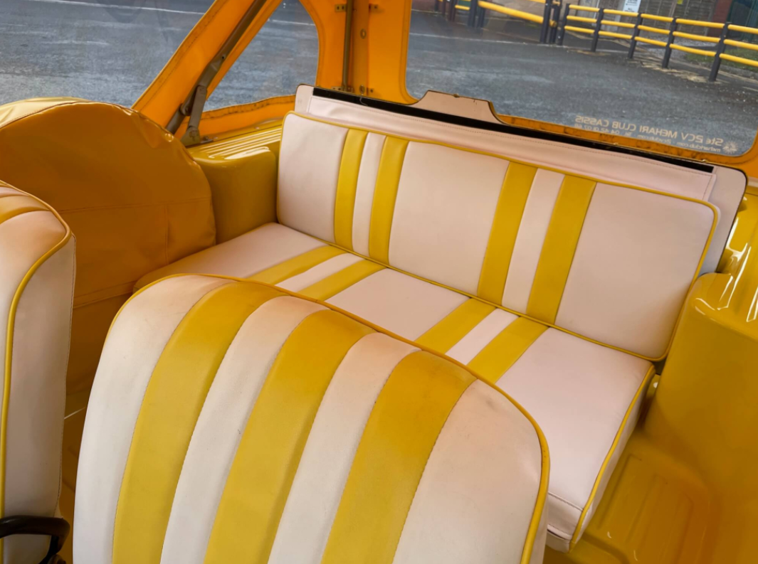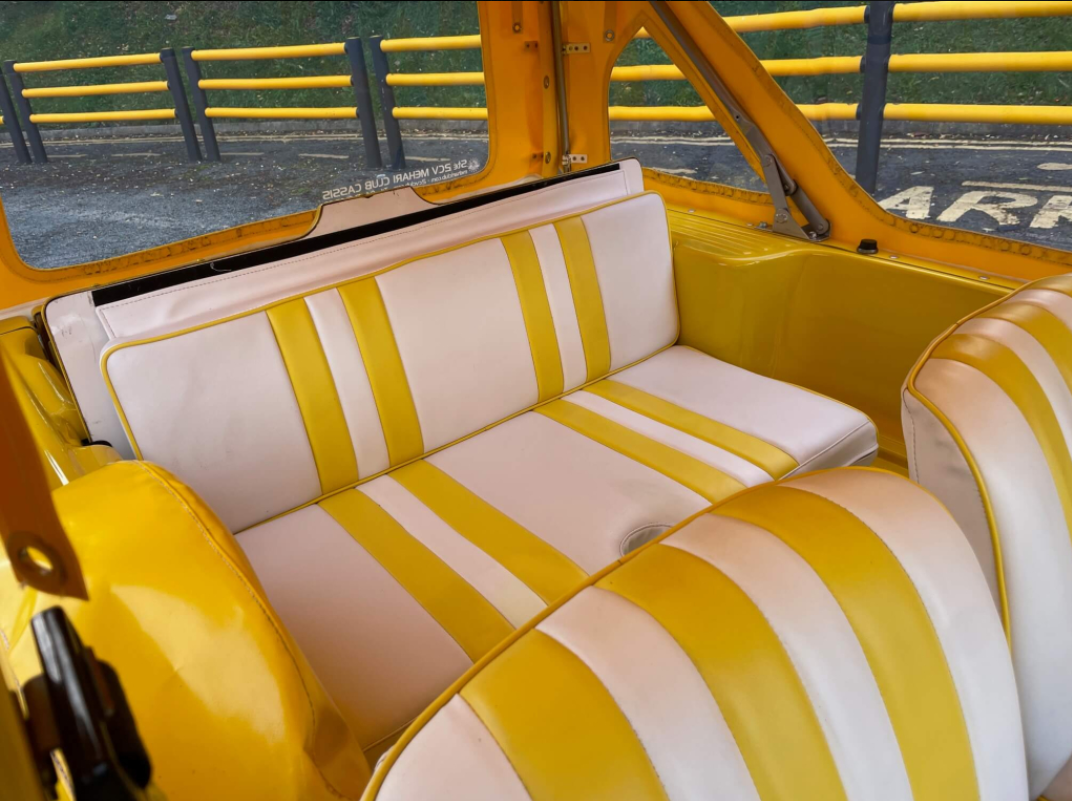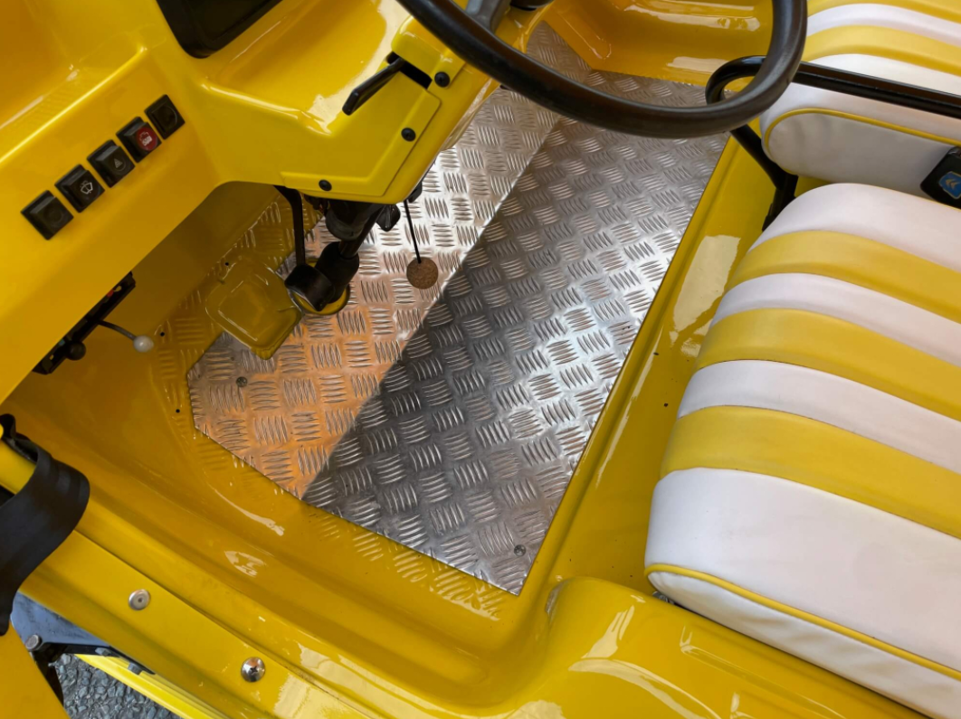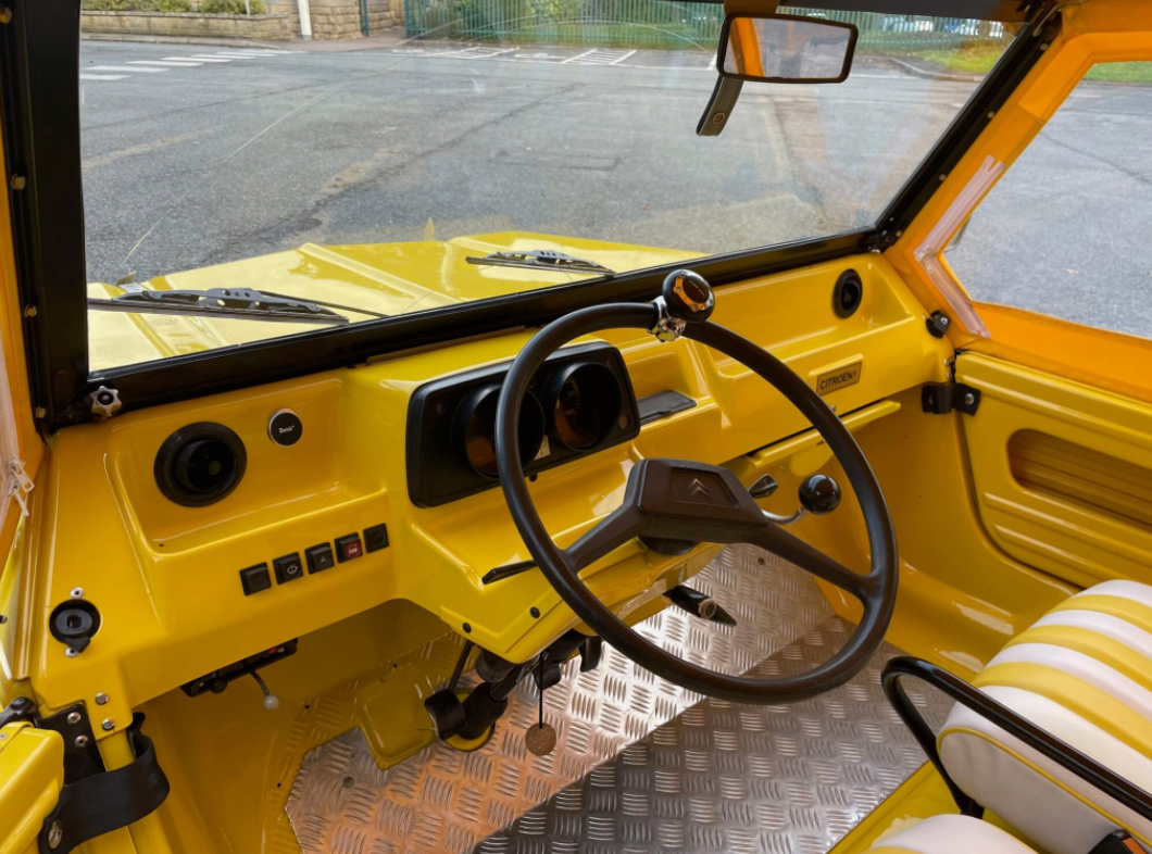 Finished in bright Yellow with yellow and white custom trim, matching yellow hood and full weather equipment.