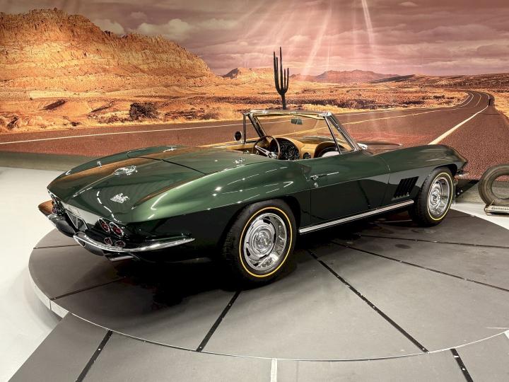 Just new in stock 1967 Corvette Sting Ray C2 Convertible in rare color combo Goodwood Green / Saddle