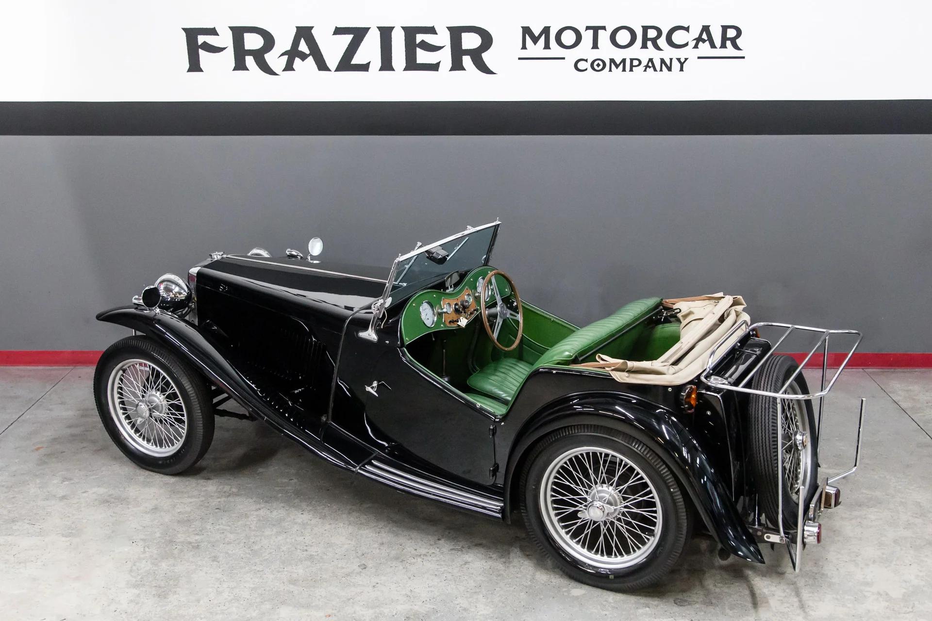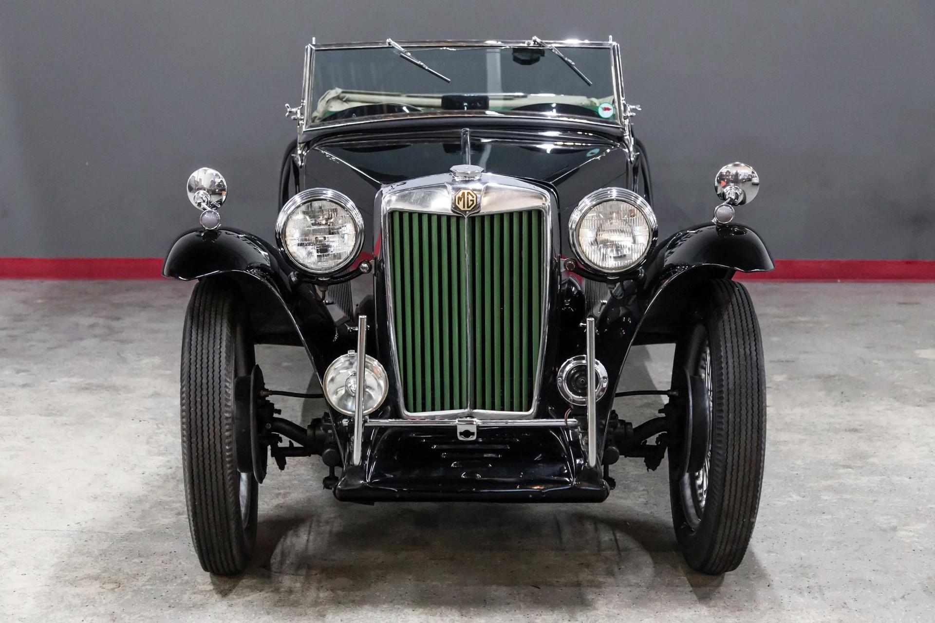 This beautiful black over green MGTC drives as nice as it looks. The car has excellent chrome ,nice leather, carpets, door cards ,and gauges .The paint is as nice as the pictures reflect. The wings are straight with no rust or accident history. The doors are tight ,wood in the tub is solid. The car hails from California and is not a victim of rust or accident history. The car will come with a new top or credit will be given for your choice of color.